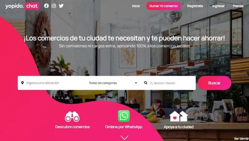 YoPido.chat fue desarrollado para colaborar con un gran número de comercios que sufrieron bajas en sus ventas. Para esto, colaboran dándoles visibilidad en un directorio online gratuito, ofreciendo sus productos en formato digital para que sean identificados por futuros clientes.