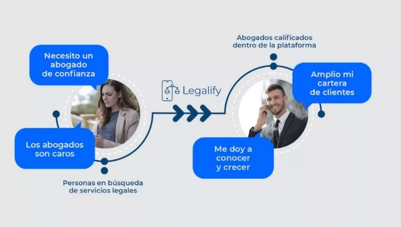 Legalify aplica una tecnología con el fin de detectar el problema que tenga una persona y recomendar al profesional indicado para esa situación. Y está apuntada a cualquier tipo de usuario con un conflicto o duda legal.