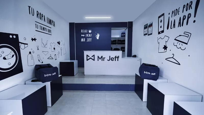 El modelo de negocios consiste en franquicias que ofrecen servicio de lavandería “puerta a puerta”, es decir que retiran la “ropa sucia” de tu casa y te la entregan limpia a las 48 horas. Cuando uno ingresa a la app, identifica el punto Mr Jeff más cercano, y un “jeffer” recoge la bolsa (de hasta 10 kilos).