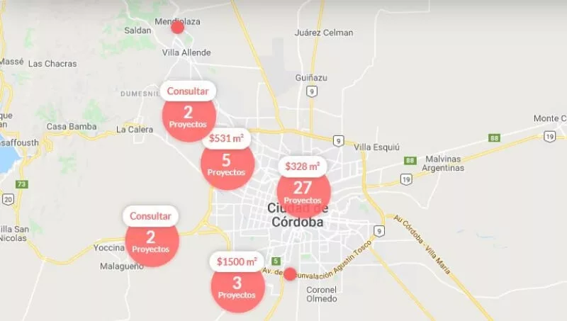 En la sección Córdoba los usuarios pueden encontrar desde lotes y barrios cerrados hasta edificios y megadesarrollos.