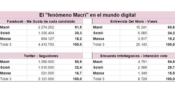 Como sea, el dato es claro: en el mundo digital Macri gana en primera vuelta. Por desgracia para él, la política se define en el mundo real.