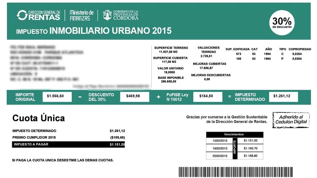 "Los costos de impresión y envío llegan a unos $ 55 millones anuales, además, otro de los motivos por los cuales se decidió eliminarlo es la baja tasa de uso por parte de los contribuyentes: pudo probarse que sólo el 10% de los contribuyentes del padrón hicieron uso del cedulón postal al momento de efectuar el pago del impuesto", explicó el funcionario. No obstante, aquellos que aún quieran seguir recibiéndolo, deberán solicitarlo a través del 0800 444 8008, previa actualización de su domicilio. En paralelo, se amplían las opciones para el acceso al cedulón por vía digital. (ver al final)