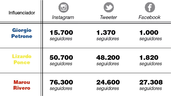 Lizardo Ponce tiene 25 años y es periodista de espectáculo. En sus redes sociales se puede ver un gran abanico de publicaciones. Allí comparte sus notas, comenta sobre la vida de los famosos, habla de la actualidad o de alguna experiencia personal. En sus cuentas los seguidores se multiplican, llegando a convertirlo en uno de los “tuiteros” más populares en Córdoba. La repercusión de sus comentarios o fotos no pasan inadvertidas en el mundo empresarial y por ello es catalogado como “influenciador” entre sus pares. A menudo es contactado por marcas para eventos o promociones de productos para que estas puedan amplificar sus mensajes y llegar al público objetivo. “Intento ser yo mismo. Pero por mi profesión aprendo a tener empatía con mis seguidores y a dialogar, eso es importante”, cuenta mientras registra que la popularidad en las redes han sido un canal para el trabajo virtual.