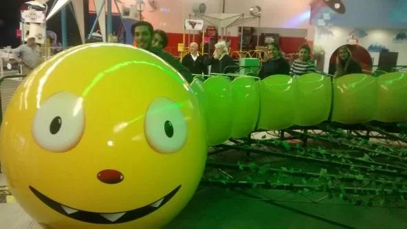 Pero también, para los niños que buscan otro tipo de acción, hay helicópteros, mini vuelta al mundo, naves espaciales, y hasta un clásico de los legendarios parques de diversiones: "el gusano loco".