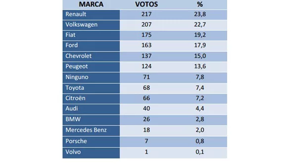 Entre las marcas de alta gama, la votación fue la siguiente: