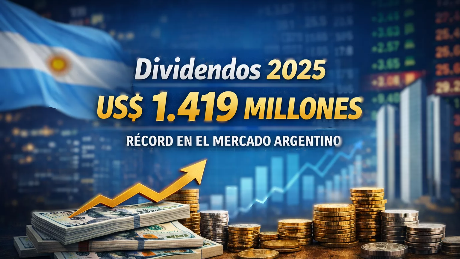 BYMA, Bolsas y Mercados Argentinos, la principal infraestructura del mercado de capitales de Argentina, informó que durante 2025 las empresas domésticas listadas distribuyeron un total de USD 1.419 millones en dividendos en efectivo a sus accionistas, estableciendo un nuevo máximo histórico.