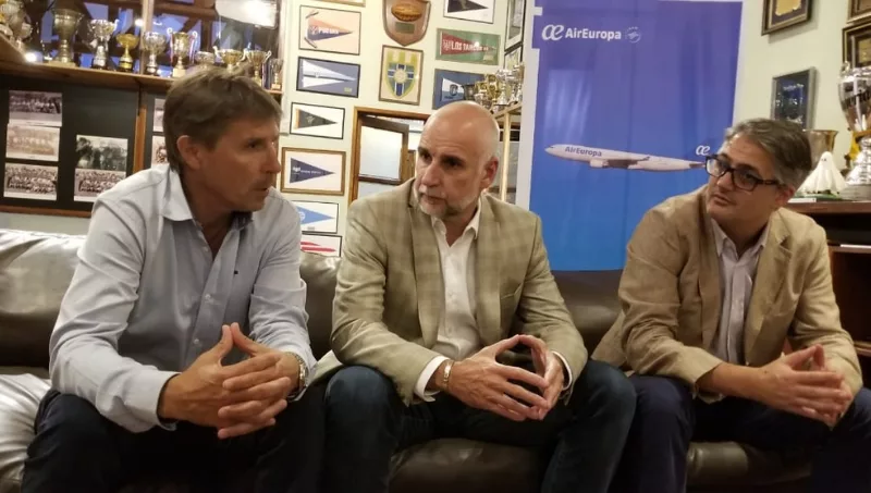 Este jueves, representantes de Air Europa, entre ellos Diego García, director comercial regional y Viviana Santanello, gerente comercial Argentina llegaron a la ciudad para presentar oficialmente el sponsoreo del club La Tablada.