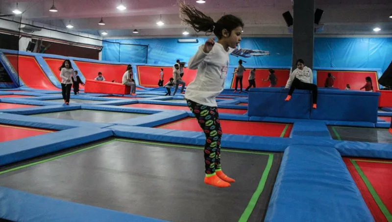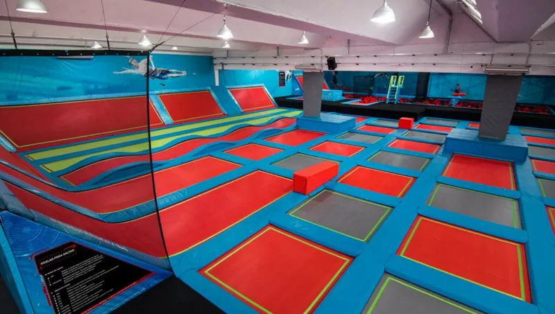 El parque de Buenos Aires posee una gran pista de camas elásticas de 1.500 m2, de un metro de altura. Además, cuenta con gran piscina repleta de cubos de espuma donde zambullirse desde un trampolín, canchas de Dodgeball, un sector para saltar barras giratorias y “trampolines” con aros de basquetball para encestar.
