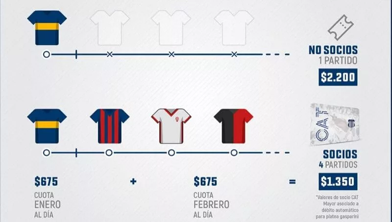 La acción principal que realiza Talleres en esta oportunidad es la activación de su nuevo programa de socios, aspirando a llegar a los 30.000. Actualmente, el club cuenta con 28.000 socios al día y para lograr este objetivo, se le ofrece a los nuevos socios acceder a las 4 fechas restantes (Boca, San Lorenzo, Huracán y Colón) de la Superliga de local por $ 1.350, teniendo en cuenta que los “no socios” pagan solo para el partido ante Boca unos $ 2.200.