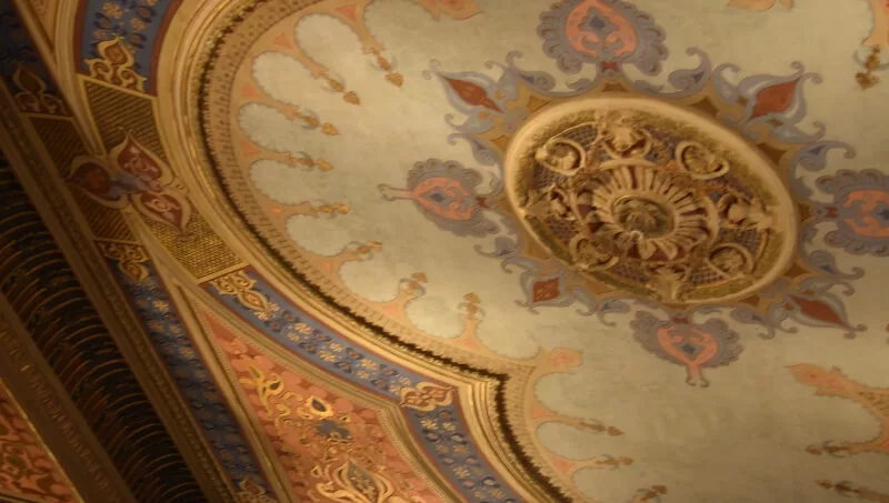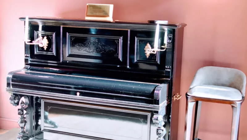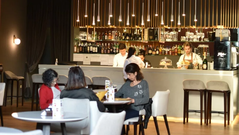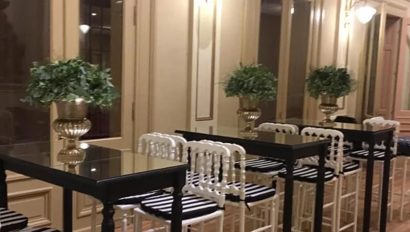 Los muebles de diseño, decoración, artefactos de iluminación y vajilla, sumados a un piano propiedad del expresidente Roca sobre cuidados pisos de madera, invitan a conocer el lugar y tomar algo en su iluminada barra, apreciando el arte en los techos hasta el último sorbo.