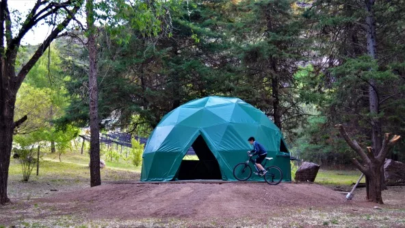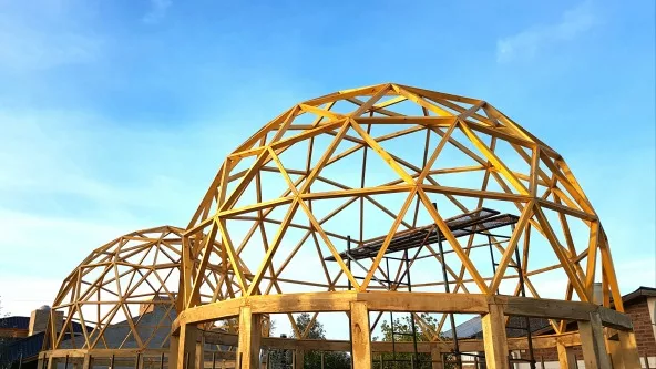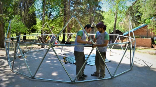 El domo es una cúpula -la particularidad es que es geodésica- y está subdividida en triángulos o pentágonos. Para su armado usan madera, metal y black out. Son prácticos, más simples de construir, antisísmicos, resistes a fuertes vientos y la cúpula es autoportante, es decir que no necesita tensores ni columnas.