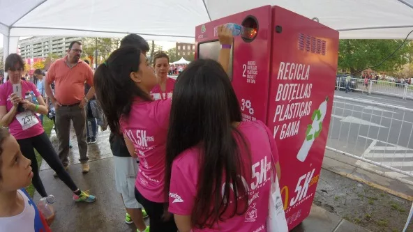 La máquina admite cualquier envase de plásticos o aluminio, los compacta y reduce hasta en un 90% del tamaño original (en promedio se pueden introducir 600 envases y tiene un alarma que avisa cuando está llena para ser vaciada). A su vez en el momento que un usuario coloca una botella hace un sorteo y dice -por ejemplo- si ganaste una remera de Sierras de los Padres o simplemente (y que no es poco) que “esta vez ganó el planeta, seguí participando”. (AA)