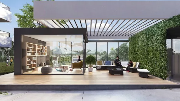 Entre las amenities se destaca un MultiHouse de 250m2 (SUM; quincho con asador, living roof; un gym temático y el otro al aire libre); Chic Book (una bibilioteca colaborativa) y una piscina con doble cascada.