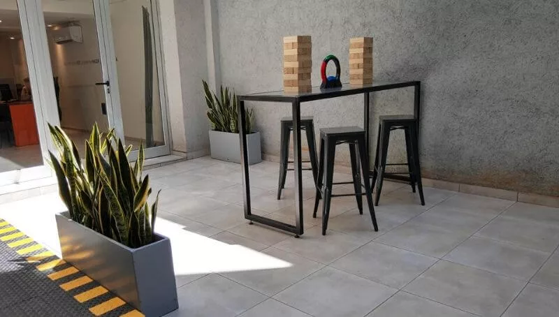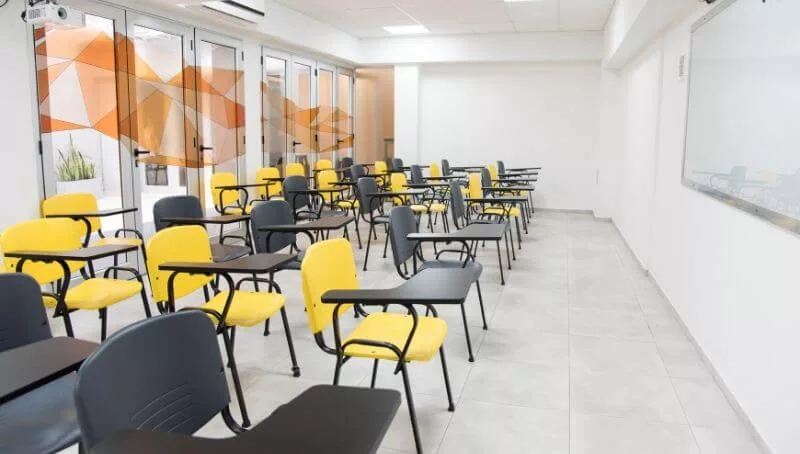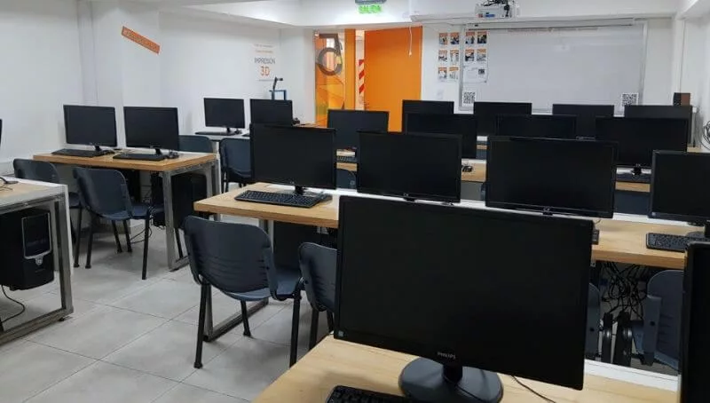 Entre la planta baja y el primer piso del edificio (de 500 m2) se distribuyen 7 aulas (una para 70 personas y una tecnológica equipada con computadoras y una impresora 3D). A su vez, disponen de una sala de reunión, bar y área de esparcimiento al aire libre.