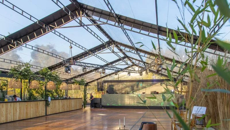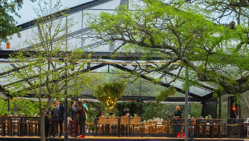 Esta tremenda puesta en escena remite al Palacio de Cristal del Parque del Retiro, en Madrid. La propuesta de carpa transparente de Freguglia redefine la estética y funcionalidad de los eventos en Argentina.