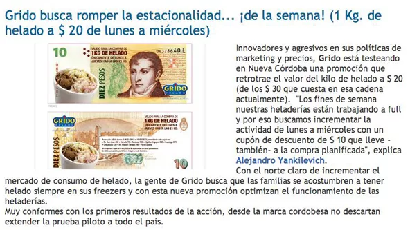 Repasando ediciones anteriores (una gimnasia semanal en InfoNegocios) encontramos que en enero de 2012 podías comprar un kilo de helado Grido a $ 20 , un 95% más barato que los $ 40 que pagamos hoy. Sin dejar de ser “un dato”, seguramente tres realidades concurrentes lo explican: