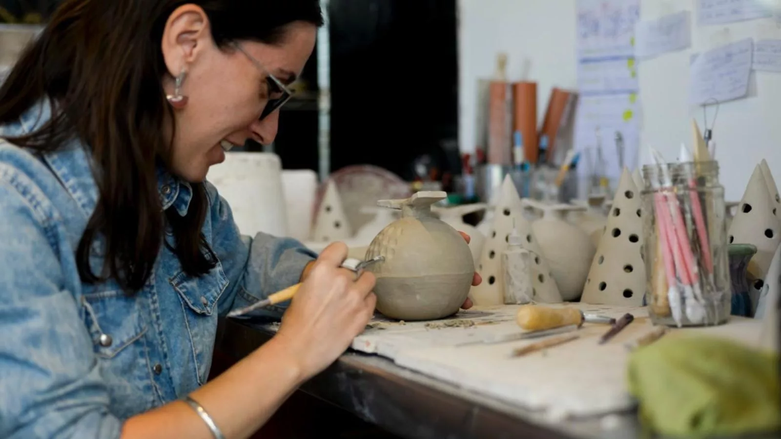 Además de vender sus propias piezas, Josefina comenzó a ofrecer talleres intensivos y experiencias cerámicas para todo tipo de ocasiones. “Hago desde cumpleaños ceramiqueros y baby showers hasta despedidas de soltera, reuniones familiares y eventos corporativos. Algunos los organizo yo en restaurantes, acá en el mercado o en otros lugares como Carlos Paz, y otros son privados, en casas o espacios definidos por los clientes”, aclara la atelier.