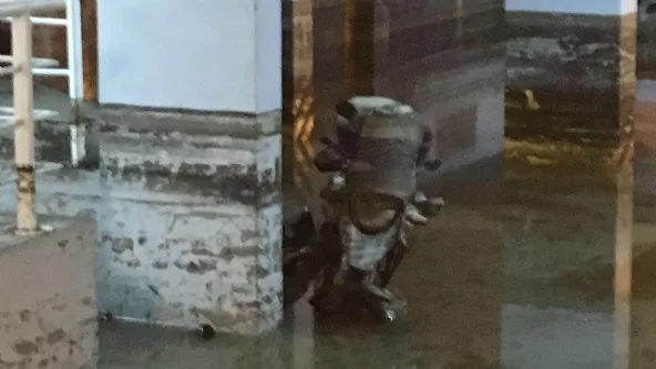 Vecinos de Villa Sol volvieron a sufrir la inundación de la zona de cocheras de ese complejo, como sucedió días atrás (ver fotos).