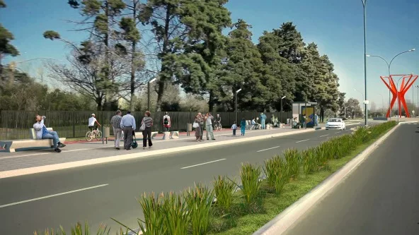 - Ciclovías a lo largo del perímetro y dársenas para estacionamiento vehicular.