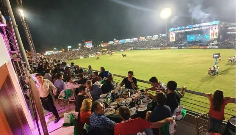 La parrilla vip que Dario “Pipi” Fantini comanda desde hace 6 años ofrece un servicio exclusivo y completito. La entrada que en octubre se puede adquirir a $ 3.200 y ahora a $ 4.500 incluye: ingreso al festival preferencial (sin hacer fila), la cena, seguridad, baños privados y barra libre. ¿Qué sirven? Empanadas y fiambres regionales en la recepción, asado (11 cortes, desde achuras hasta vacio, costilla y matambre) y postre: brownie con helado, tiramisú y almendrado. Todo acompañado con vino y una copa de champagne. Pero hay más, la barra libre ofrece fernet, cerveza, campari y ron. El espacio tiene capacidad para 190 personas y solo quedan lugares libres para el domingo.