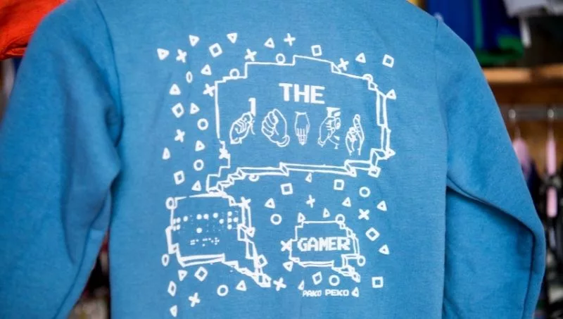 La colección de ropa de Pako Peko bajo el concepto de “ropa de aventuras” presenta su línea de ropa sin género. Julia Urquiza, creadora de la marca, con su hermana tuvieron, hace 8 años, la idea de insertar en las remeras mensajes en braille, lenguaje de señas y pictogramas. Y luego con la ayuda de Otta (una aplicación para que personas con discapacidad puedan comunicarse), hacen los diseños con estas características.