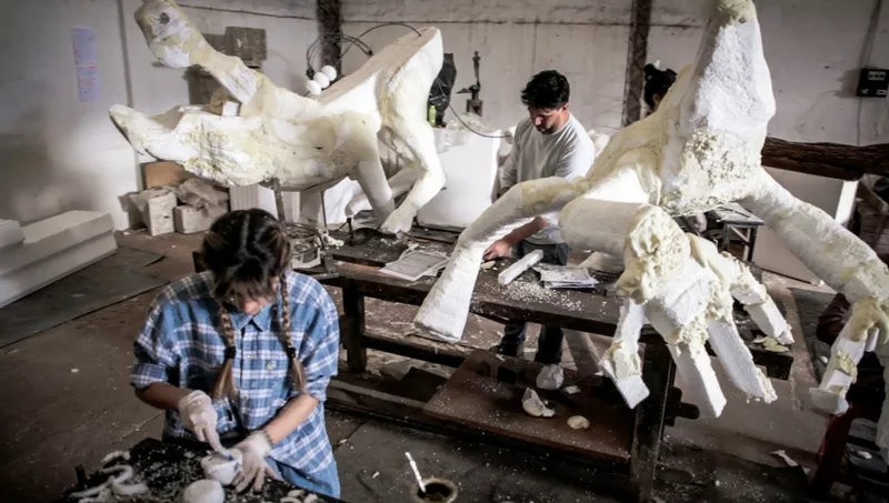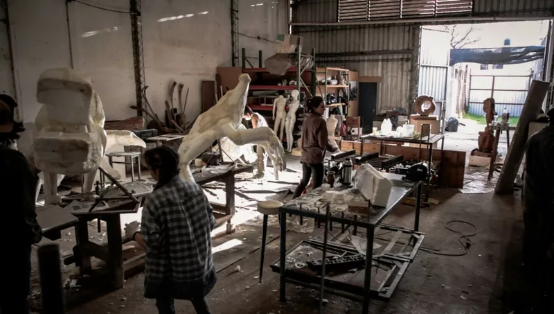 Esto llama la atención de este artista local, Hora French, que adoptó esta forma de trabajo para poner en marcha un proyecto que no podría llevarse a cabo de otra manera. Para la realización de Ficcion dirigió a 36 personas divididas en 10 áreas, en cuatro talleres en diferentes puntos de la ciudad y con una inversión de algo más de $800.000.