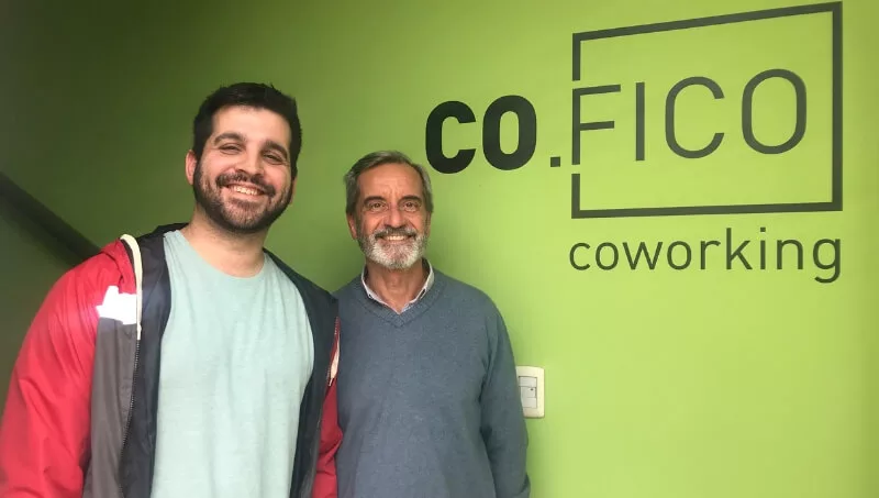 Marcos (30) es arquitecto y Claudio (66) ingeniero civil. Juntos conforman Empresa Constructora Filloy, a partir de la cual nace Cofico coworking, ya que buscaban una renovación en la empresa y vieron la necesidad en clientes y colegas de conformar un espacio de trabajo conjunto.