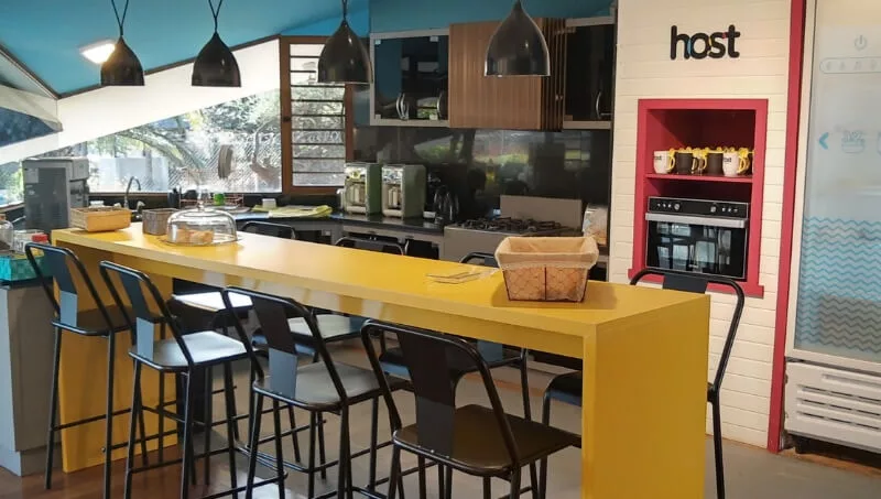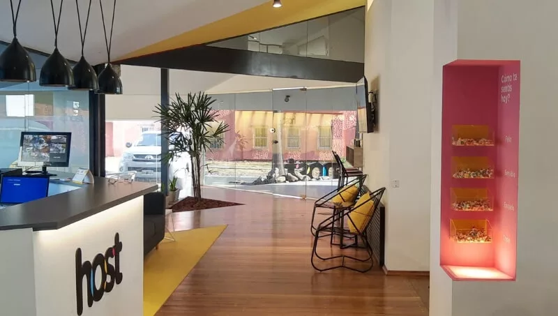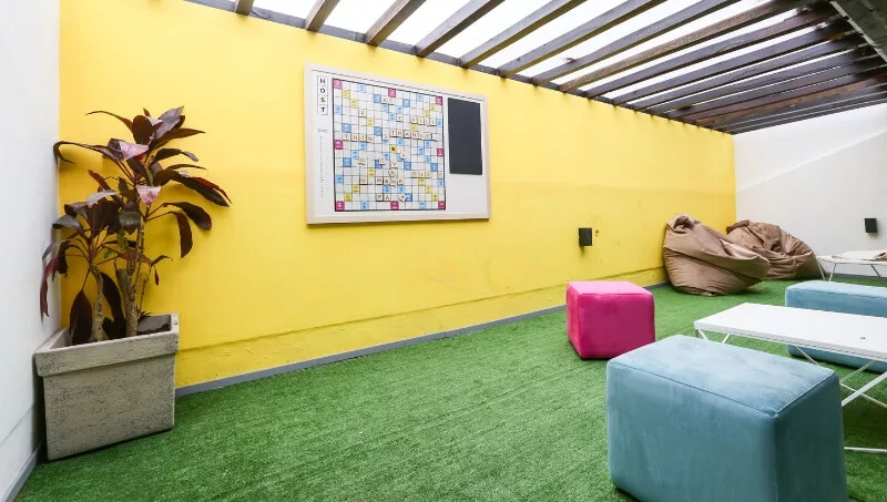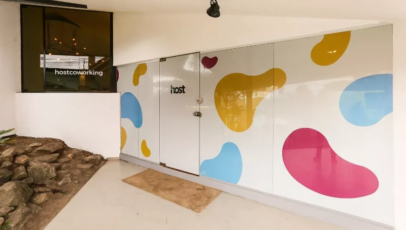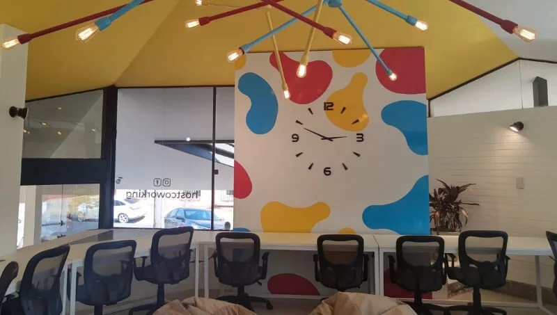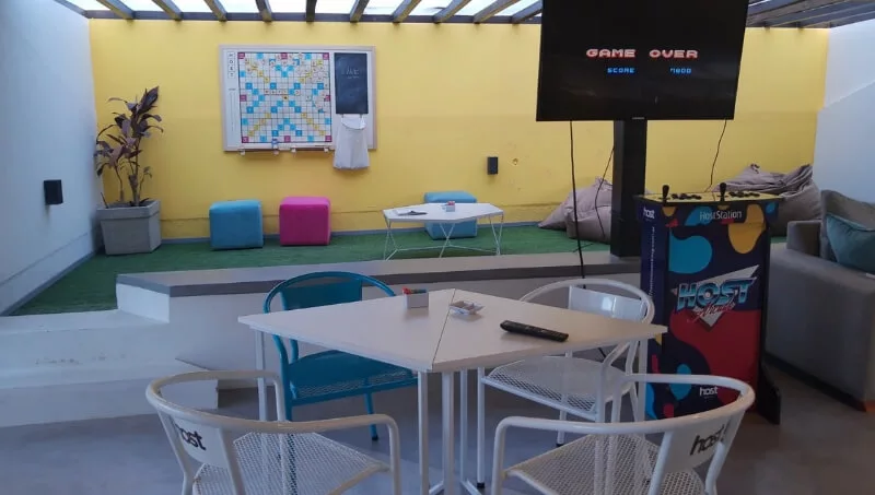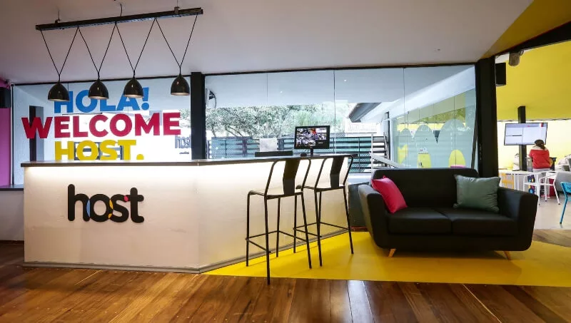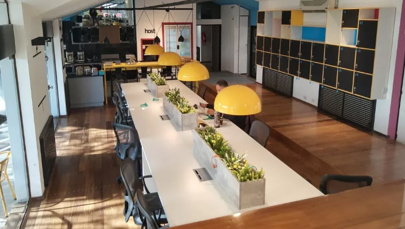 Host Coworking dispone de 65 puestos de trabajo que se dividen en dos áreas comunes y tres oficinas (dos para 8 personas y una para 14 con baño privado). A su vez sus coworkers tienen acceso a la sala de reunión para 15 personas, call room y espacio de relax y juegos como un Arcade y un Scrabble, sillones, mesas y pantallas.
