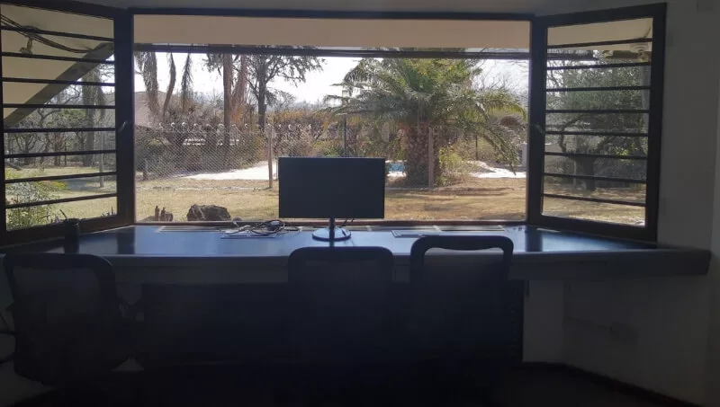 Luego del recorrido, nos ubicamos en dos puestos de trabajo con una hermosa vista a las sierras, y desde allí escribimos.