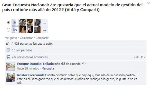 Cristian Almirón: “Creo que no pasa por estar de acuerdo con el modelo. Mucha gente de ese 54% que dijo que Sí, es gente que tiene miedo a que cuando finalice el mandato de la presidente se caiga por completo el país, no por su 'gran gestió' (sic), sino porque actualmente están tapando con tierra los baches, y cuando ingrese una nueva gestión van a volverse visibles todos los problemas y errores de la actual (la cual tuvo muchos aciertos y errores, pero predominaron los segundos)”.