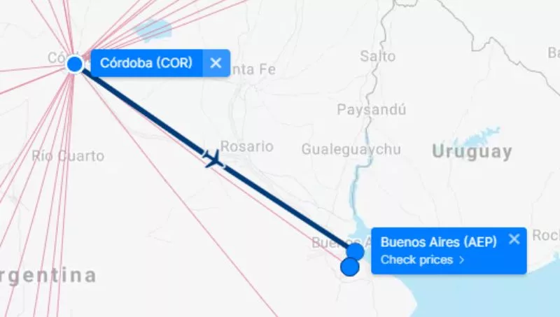 AEP-MDZ primero es la ruta más volada, por encima de AEP-COR, AEP-BRC y AEP-IGR.