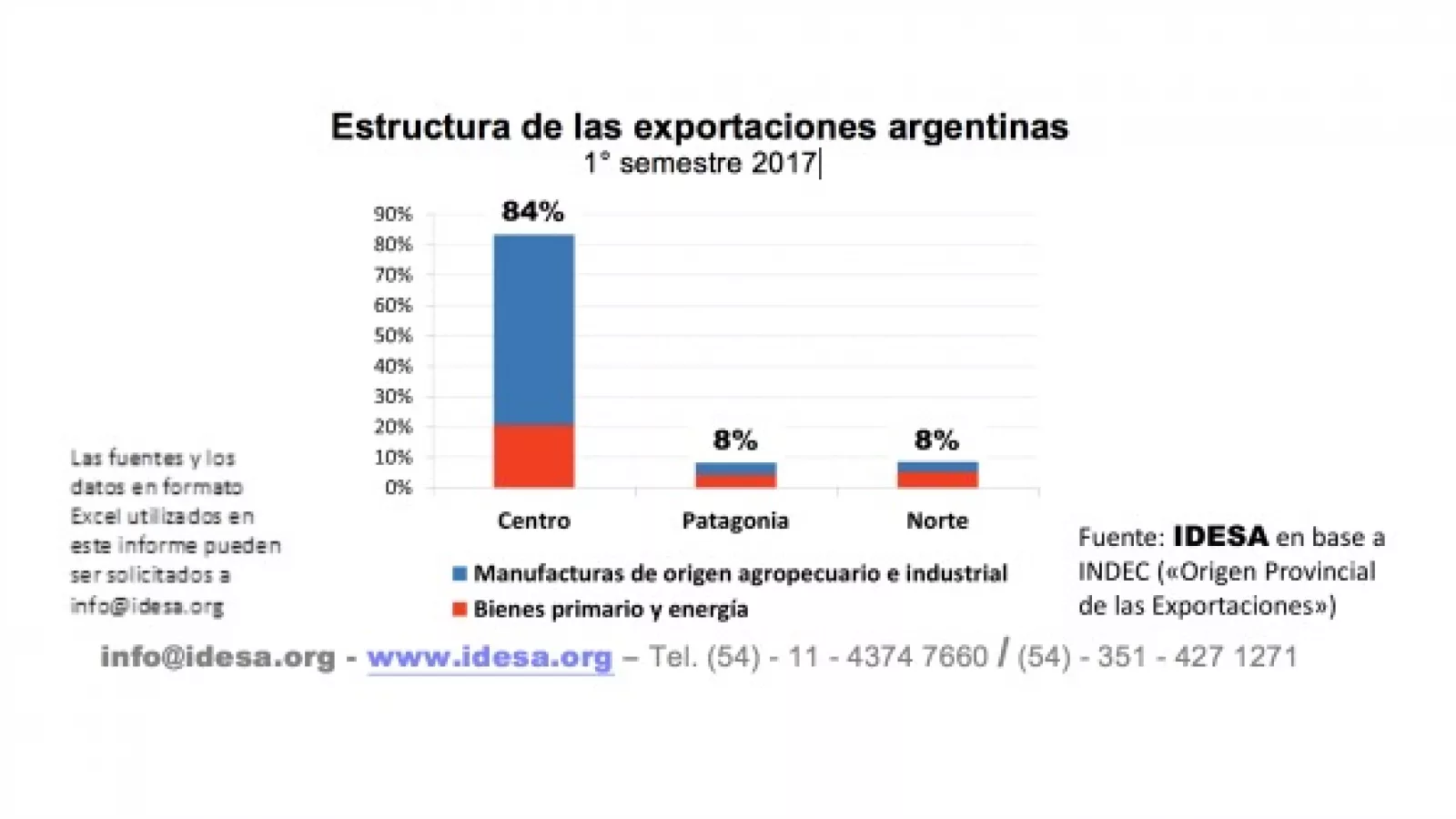Estos datos ponen en evidencia las enormes diferencias en la capacidad exportadora que se presenta según las regiones. El grueso de las exportaciones, especialmente las industriales, se generan en el centro del país (región pampeana y Cuyo). El aporte de las provincias del sur es marginal y además la mitad son ventas de productos en bruto, sin procesamiento industrial, o hidrocarburos. En el norte, la marginalidad de las exportaciones es similar al sur, con el agravante de que es más baja la incidencia de los productos industrializados, además de que prácticamente no cuenta con exportaciones energéticas.