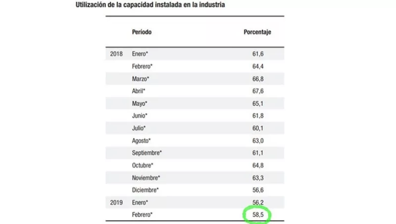 La lectura negativa es que la capacidad instalada de la industria (como un todo) está apenas por encima de la mitad, es decir, que con el mismo parque de máquinas y recursos se podría producir casi el doble.