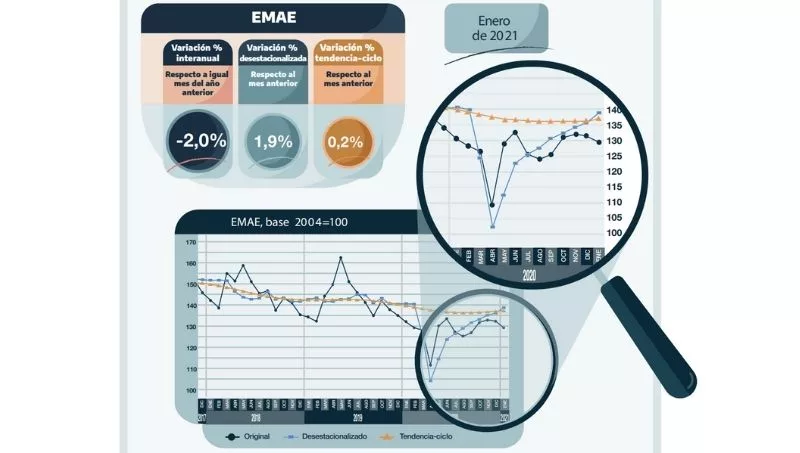 Con relación a igual período de 2020, se registraron aumentos en 7 de los 15 sectores que conforman el EMAE. Los tres sectores de mayor crecimiento en enero fueron Pesca (+12,3% i.a.), Construcción (+10,2% i.a.) e Intermediación financiera (+7,2% i.a.). La actividad de la construcción también se destacó por ser una de las de mayor incidencia positiva en el nivel general, junto con la de la Industria manufacturera (+4,6% i.a.) y el Comercio mayorista, minorista y reparaciones (+2,6% i.a.).