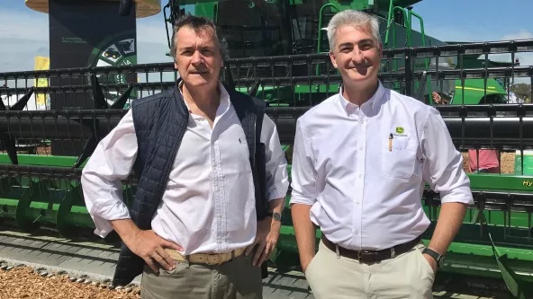 Luego, el presidente del Santander Río visitó el stand de John Deere, la principal empresa de maquinaria agrícola del mundo y acordó, con el titular de la filial local, Gastón Trajtenberg, planes de financiación a una tasa fija de 15% en pesos y a 4 años para la compra de los productos de la importante firma.