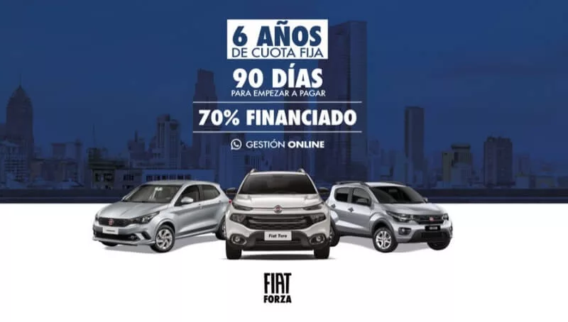 La promoción incluye vehículos de la marca Fiat y también de Jeep, Ram, Chrysler y Dodge a través de operaciones 100% on line con vencimiento de la primera cuota a los 90 días y posibilidades de financiar el 70% de la compra hasta en 6 años (72 meses) con cuota fija (TNA del 36,9% y CFTEA del 57,25%).