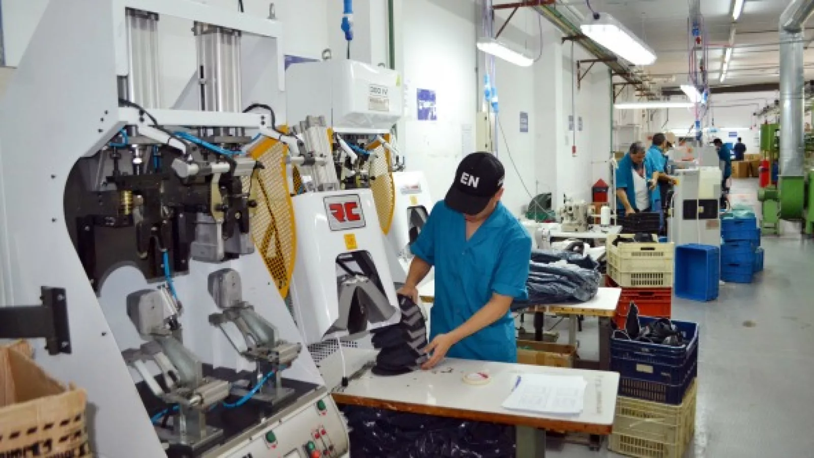 - Cantidad de pares producidos por día: 3500 pares de zapatillas. En una jornada laboral de 9 horas, se mide teniendo en cuenta que hay tres procesos paralelos y en línea todo el tiempo.