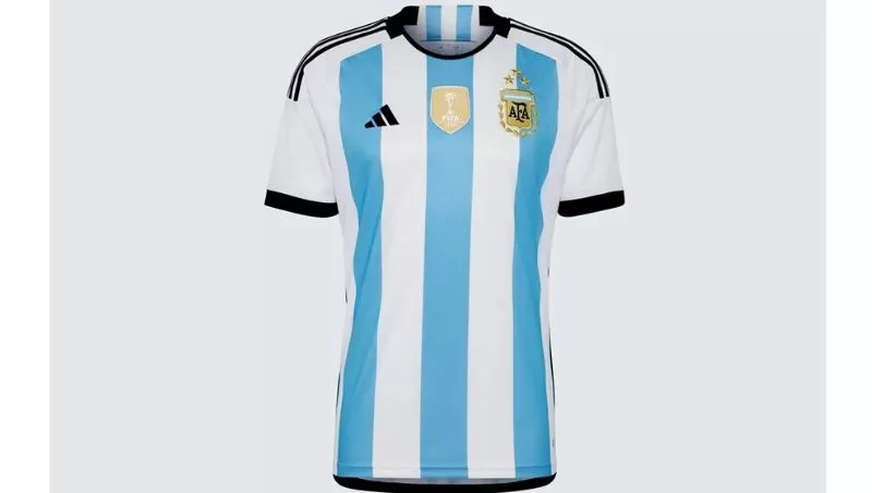 Las tres estrellas doradas están bordadas (y no sobreimpresas) sobre el escudo de la Asociación del Fútbol Argentino (AFA). Además, la casaca lleva impreso el escudo FIFA World Champion en el centro del pecho.