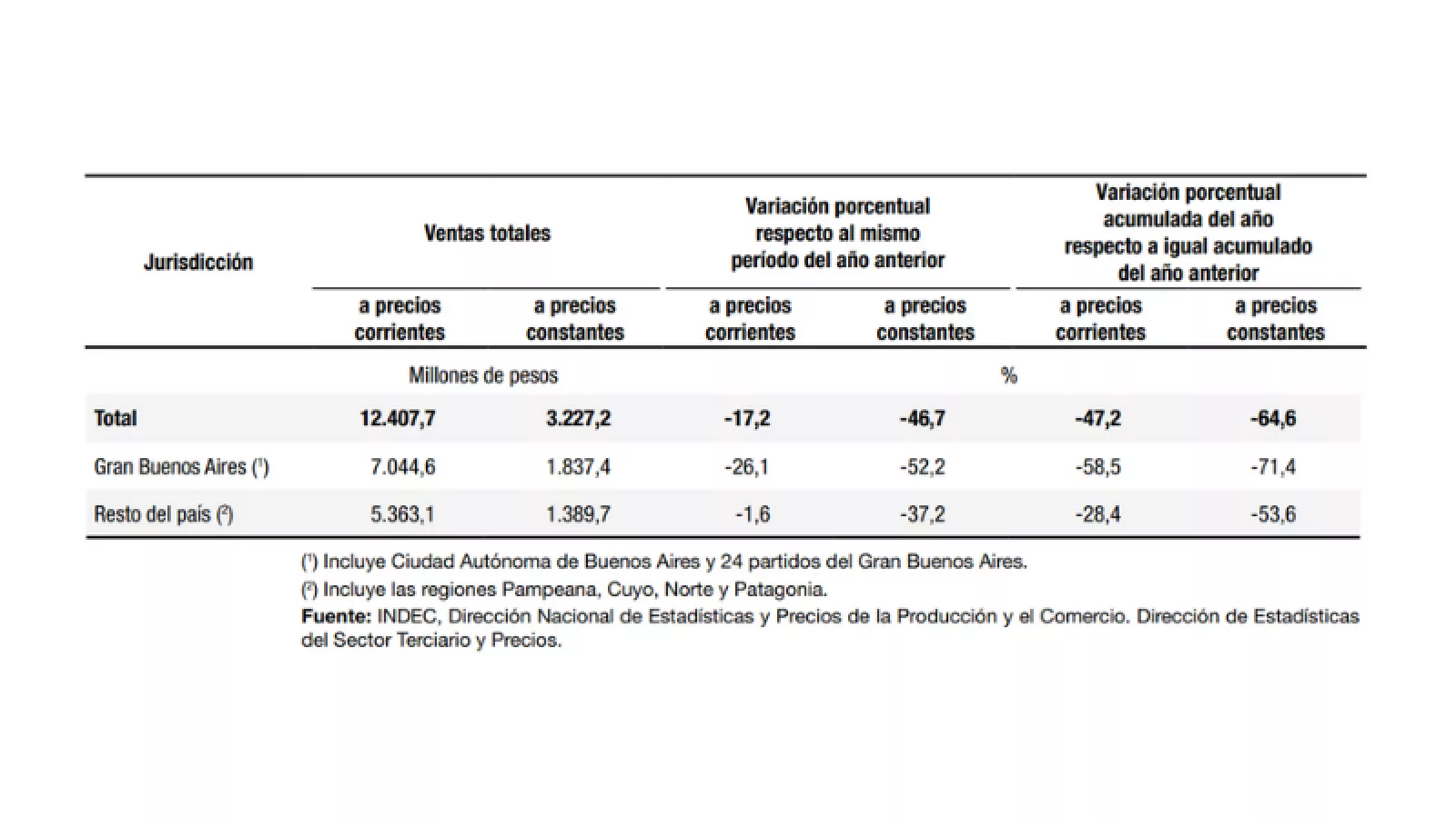 En noviembre, puntualmente, mientras los shoppings de GBA vendieron 52% menos que el mismo mes del año anterior, los del interior retrajeron ventas (siempre a valores constantes) un 37%.