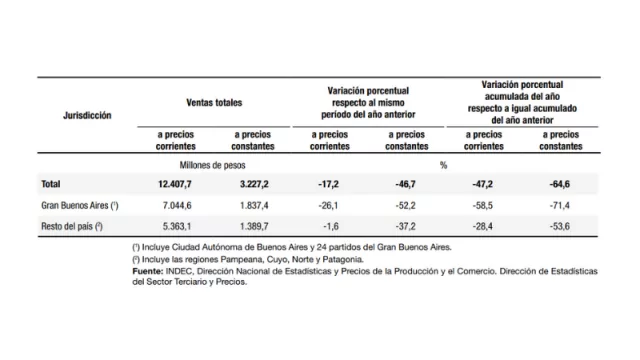 En tanto, la venta en supermercados cayeron en noviembre pasado 1,1% sobre el mismo mes del año anterior a valores constantes.