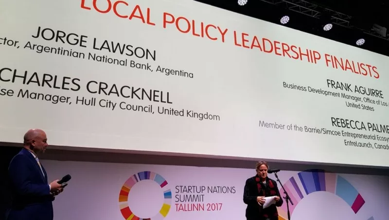 La tercera edición de los “Startup Nations Awards” se llevó a cabo en la ciudad de Tallinn, capital de la república de Estonia, donde se premió a los líderes en tres categorías específicas: Liderazgo en Políticas Públicas Locales, Pensamiento Innovador y Liderazgo en Política Nacional. Los criterios utilizados por el comité de evaluación fueron: claridad en la identificación de problemáticas que afectan el ecosistema local, nivel de innovación de la política específica, nivel de compromiso personal para promover el espíritu emprendedor en el pensamiento del gobierno local, grado en el cual el esfuerzo local ayudó a establecer el ejemplo para la acción a nivel nacional, disponibilidad de métricas o evidencia para mostrar el impacto de dicho esfuerzo y grado en el cual es posible replicar las acciones realizadas, adaptándolas a otras áreas.