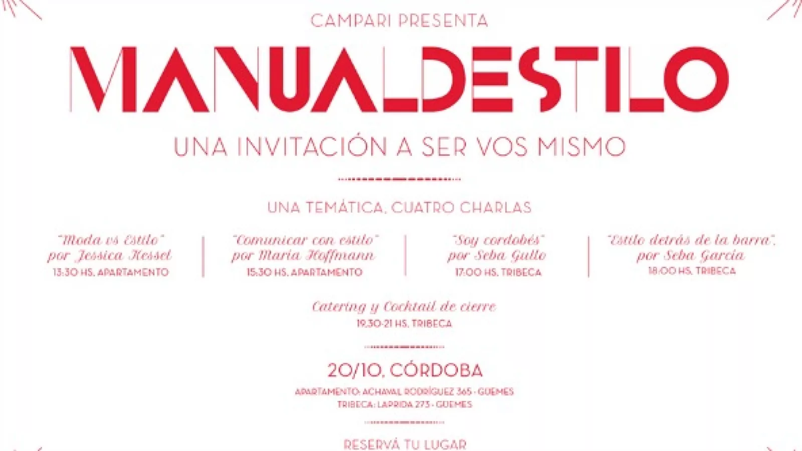 Campari, marca líder en el mercado de aperitivos, presenta en Córdoba el tercer ciclo de charlas denominado Manual de Estilo.