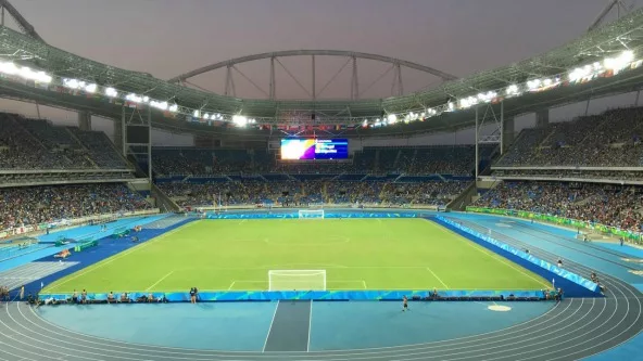 (Por Mario Gerlo Sanchéz) Muy pocos argentinos están en el estadio acompañando la Selección Argentina en estos Juegos Olímpicos (de hecho, en el primer tiempo echaron uno de los pocos presentes por incitar a la violencia). Ver galeria.