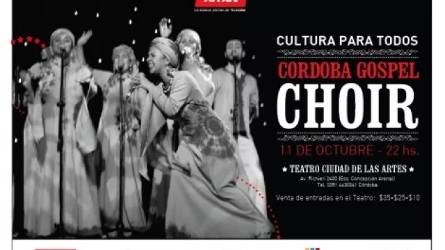 - El sábado 11 de octubre, en el marco "Arnet Cultura para todos" se presenta en nuestra ciudad el Córdoba Gospel Choir. El show se llevará a cabo en la Ciudad de Las Artes. Más info acá.