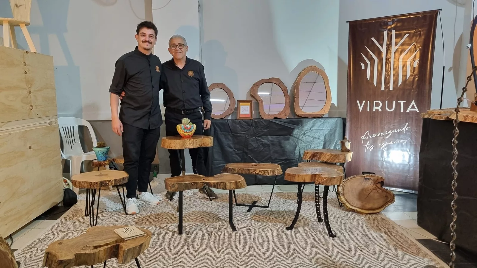 Uno de los stands fue el de Oscar y Jhonatan Madera. Sí, ese es el apellido del carpintero y su hijo restaurador de antigüedades de madera, que además lleva por apodo “Viruta”, denominación que eligieron además para el proyecto que comparten desde hace menos de un año.