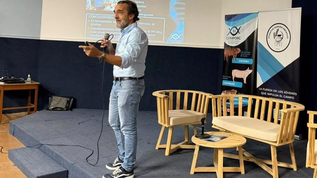 Guillermo LLoveras, socio gerente de Genporc, mantuvo una reunión con la comisión directiva del Clúster Porcino, y luego se brindó una disertación abierta a productores porcinos de la zona, chacinadores, gastronómicos y empresas integrantes de la cadena de valor, por parte de Marcos Baro de la Federación Agraria.