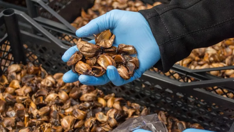 Barra, que es ingeniero químico, explica que al ajo blanco se lo limpia, se lo pasa a dientes y luego va a parar a unos hornos. Allí se genera una atmósfera de humedad y temperatura controlada para evitar que se seque o se cocine. De esta manera logran que sus propiedades nutricionales no se descompongan.
