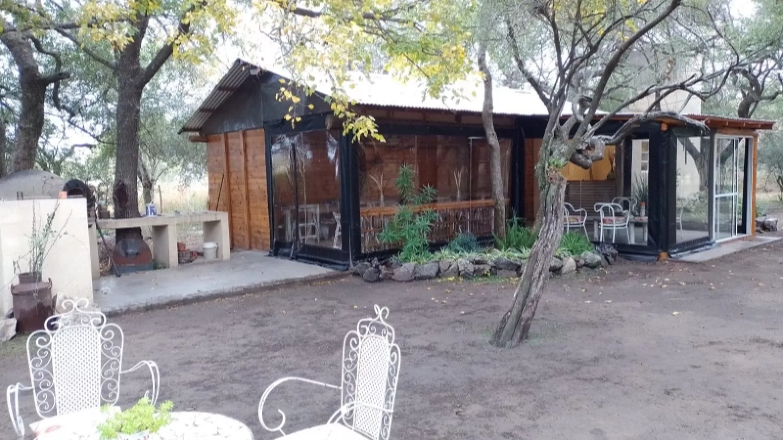 El lugar, de casi una hectárea, tiene un quincho cubierto de unos 100 metros cuadrados. La zona cuenta con asador y un horno de barro entre los árboles. También con cocina y baños.