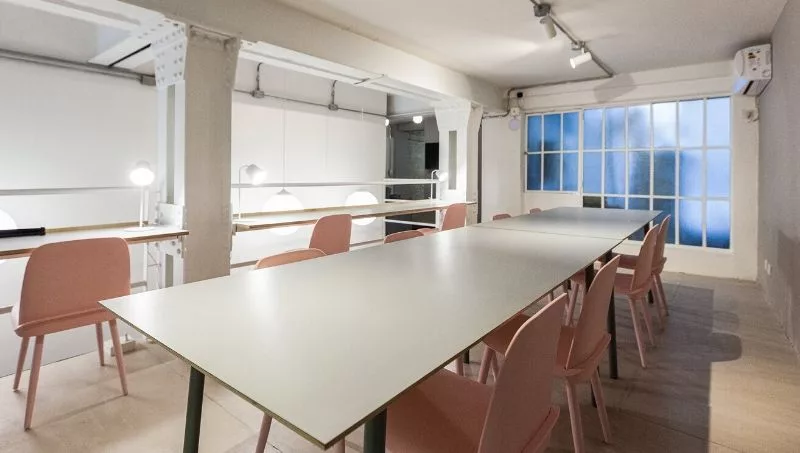 En el entrepiso se encuentra el espacio de coworking, pensado para aquellos viajeros que buscan un lugar cómodo con wifi para poder trabajar de manera remota durante su estadía.