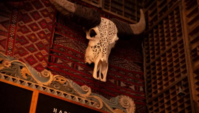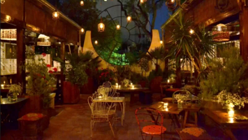 El collage, la mixtura del ambiente y su propuesta gastronómica es lo que hace de este bar un lugar tan particular, que cuenta con tres espacios que lo conforman: el salón principal, la terraza y el patio del rey. En este último se incorporó recientemente una nueva barra de cervezas artesanales, con imponentes columnas y molduras provenientes de India.